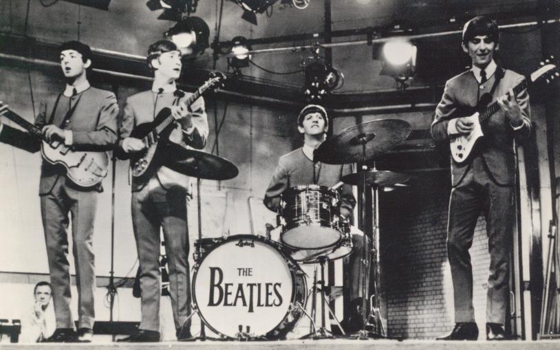 A pop and rock group from Liverpool, England formed in 1960. Primarily consisting of John Lennon (rhythm guitar, vocals), Paul McCartney (bass guitar, vocals), George Harrison (lead guitar, vocals) and Ringo Starr (drums, vocals.